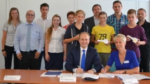 Neben den klassischen Kooperationen wie Bewerbungstraining, Vorstellen von Berufen und Ausbildungs- sowie Entwicklungsmöglichkeiten in einem internationalen, mittelständischen Unternehmen nehmen in jedem Schuljahr zwischen 25 und 30 Achtklässler an einem Kooperationsprojekt teil.